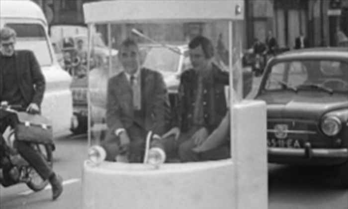 Early on in the debate about automobility in Amsterdam, their 1965 White Bicycle Plan had diagnosed automobility as a regime of spatial violence. Because the plan was ultimately shot down, Witkar attempted to reactivate that cultural logic, but reengineered it to function inside the logic of automobility itself. Designed by former Provo activist Luud Schimmelpenninck, it redesigned the car as a slow-moving, and deliberately unglamorous system—what the designers called a “fragile shell,” and onlookers “a rolling telephone booth.”
